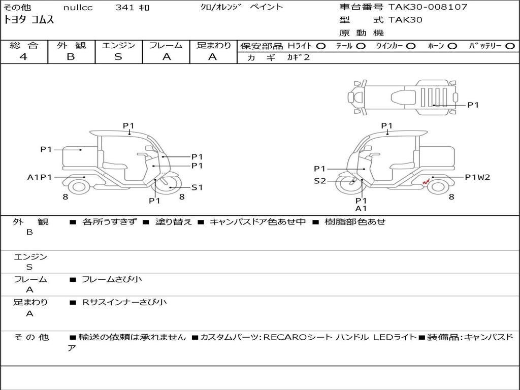 | Номер рамы / VIN | TAK30-008107 |