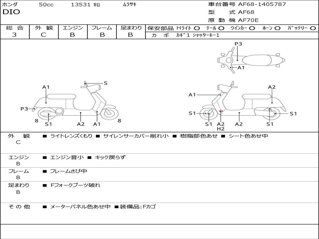 | Номер рамы / VIN | AF68-1405787 |