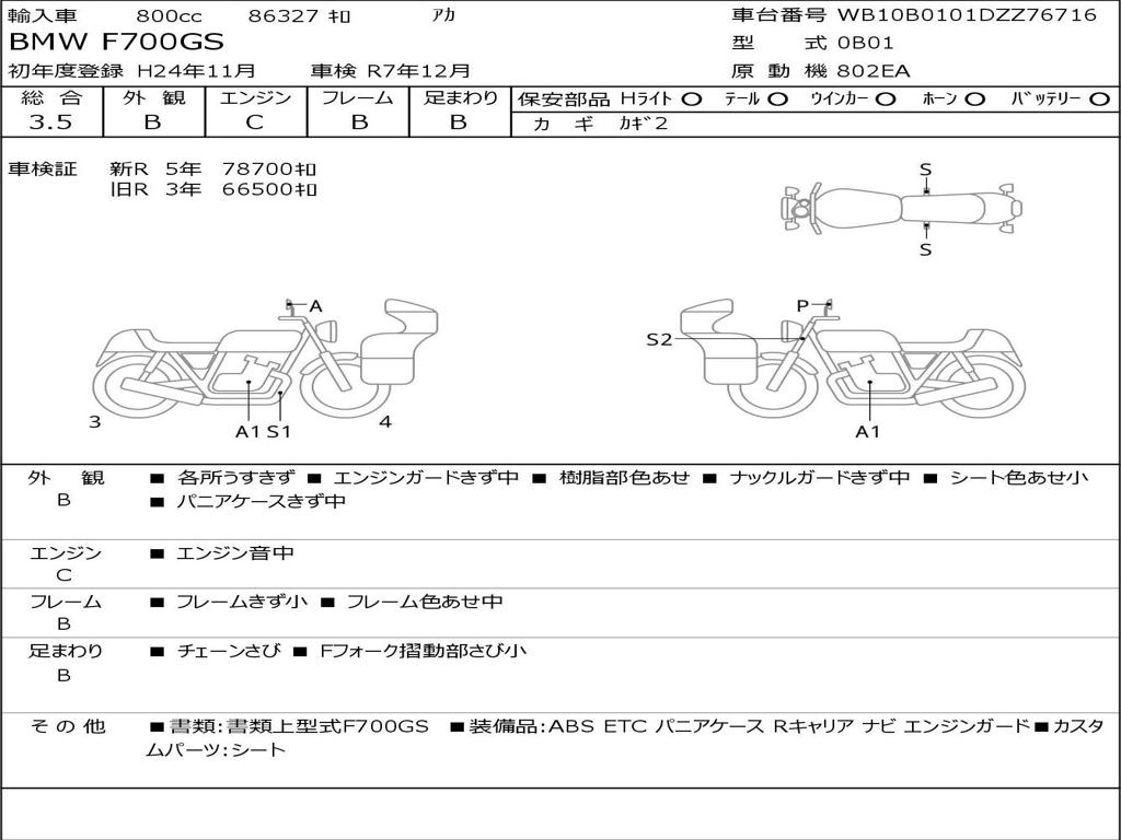 | Номер рамы / VIN | WB10B0101DZZ76716 |