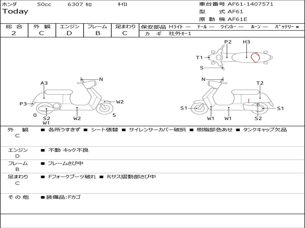 | Номер рамы / VIN | AF61-1407571 |