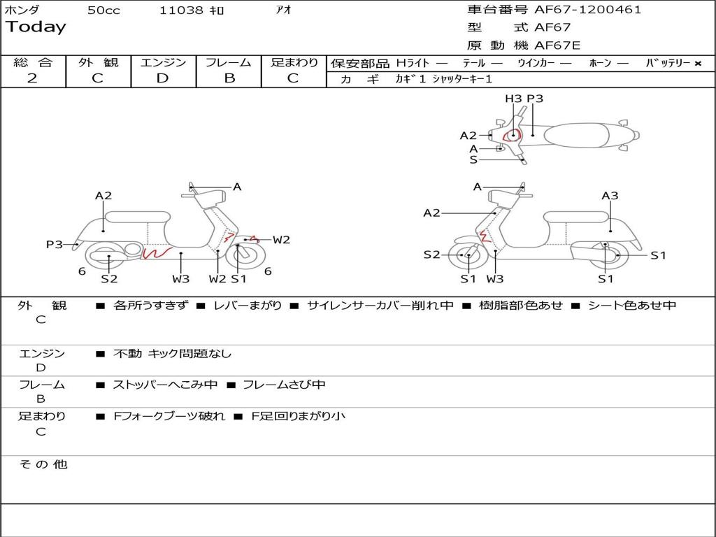 | Номер рамы / VIN | AF67-1200461 |