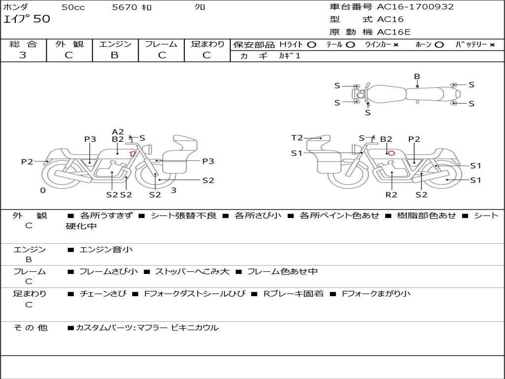 | Номер рамы / VIN | AC16-1700932 |