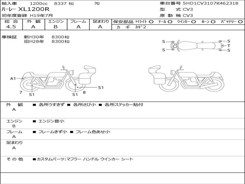 | Номер рамы / VIN | 5HD1CV3107K462318 |