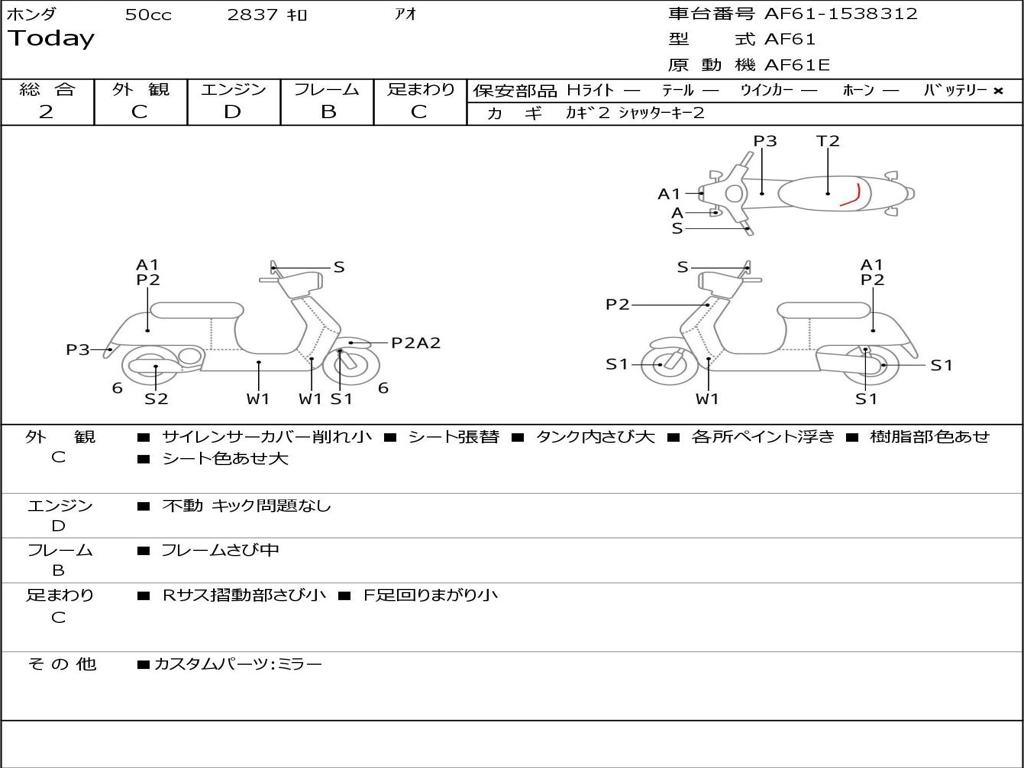 | Номер рамы / VIN | AF61-1538312 |