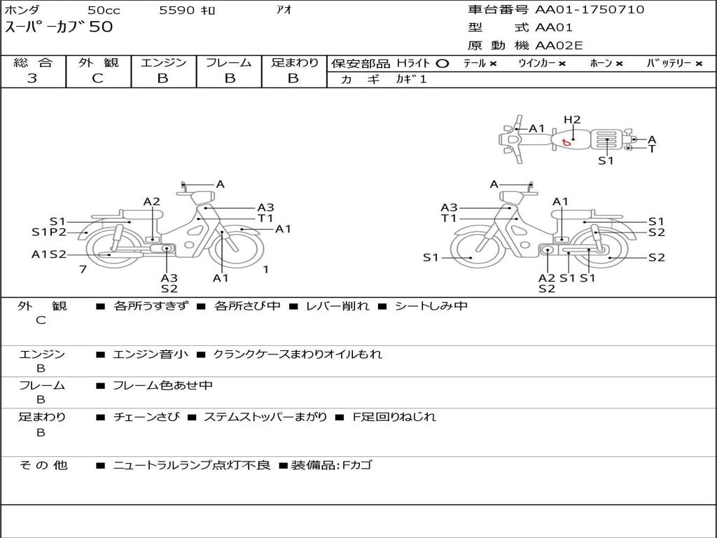 | Номер рамы / VIN | AA01-1750710 |