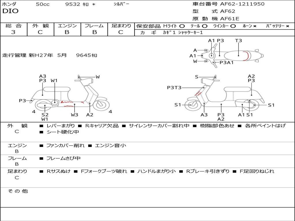 | Номер рамы / VIN | AF62-1211950 |