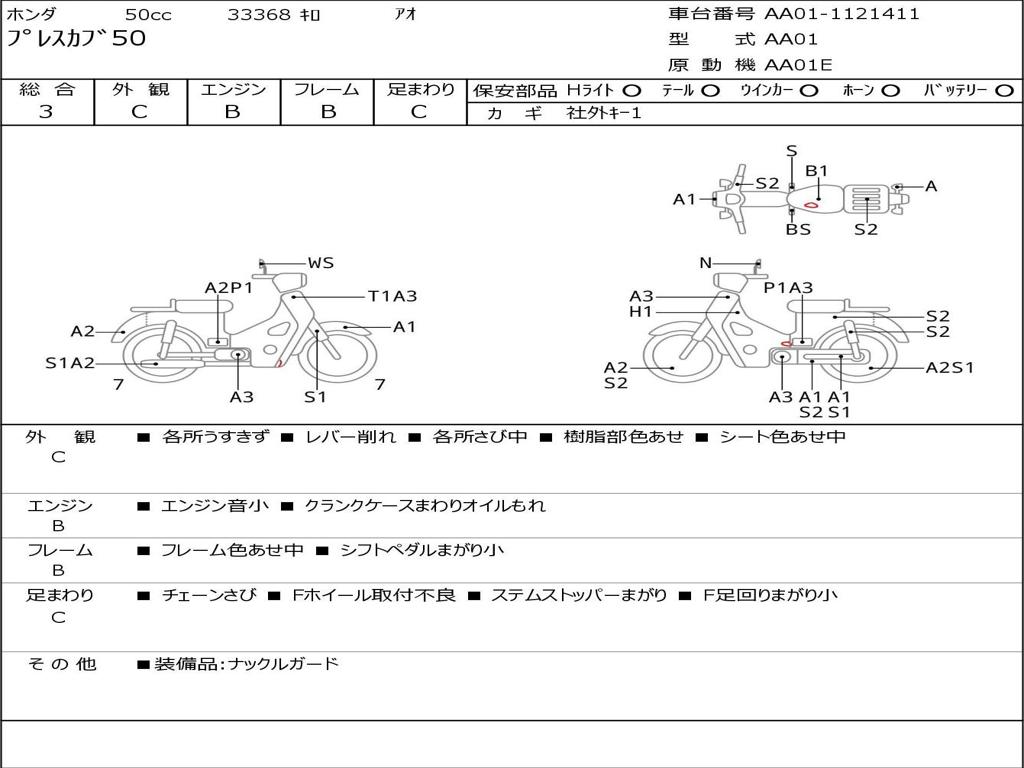 | Номер рамы / VIN | AA01-1121411 |