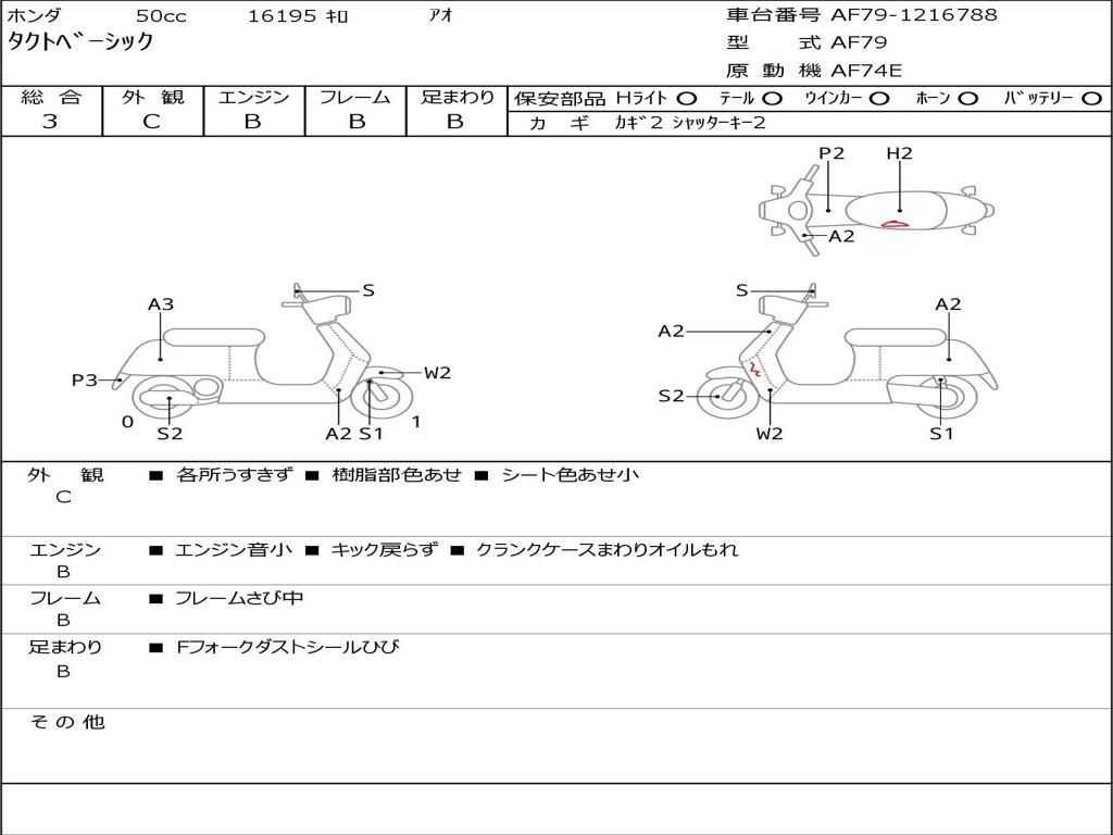 | Номер рамы / VIN | AF79-1216788 |