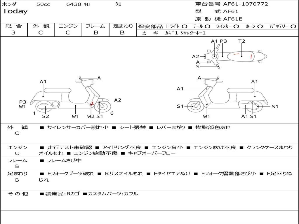 | Номер рамы / VIN | AF61-1070772 |