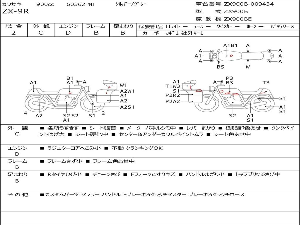 | Номер рамы / VIN | ZX900B-009434 |