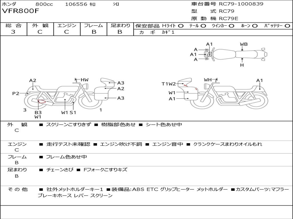 | Номер рамы / VIN | RC79-1000839 |