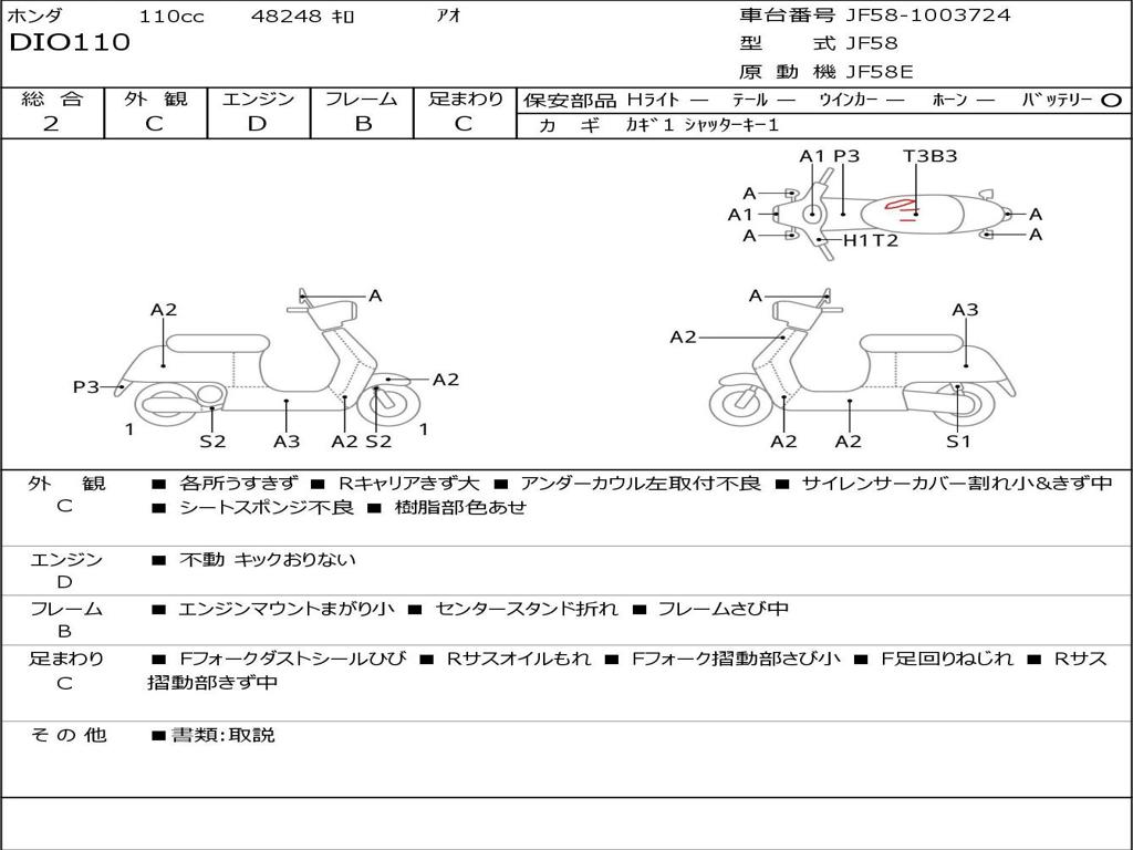 | Номер рамы / VIN | JF58-1003724 |