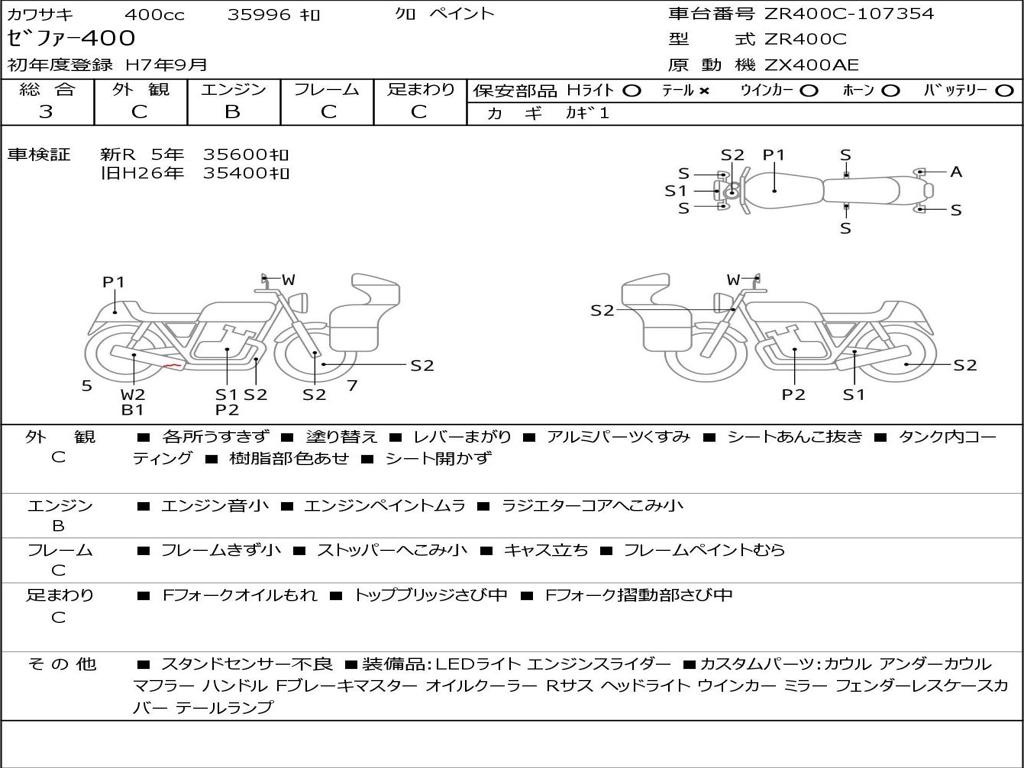| Номер рамы / VIN | ZR400C-107354 |