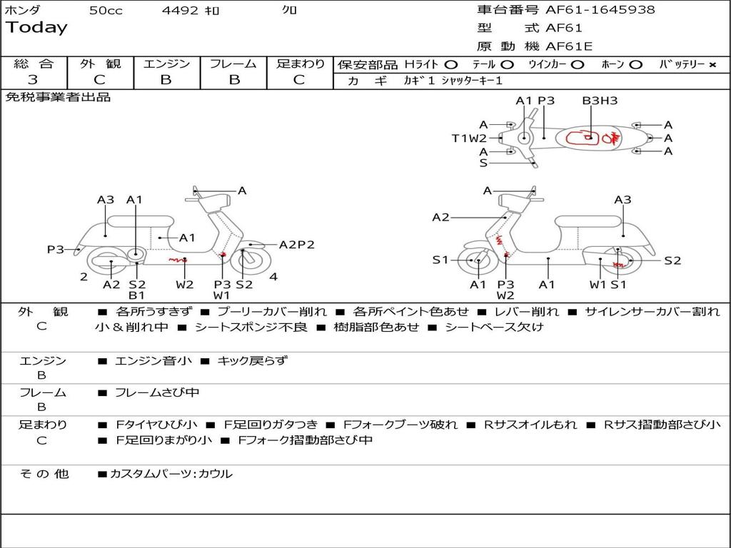 | Номер рамы / VIN | AF61-1645938 |