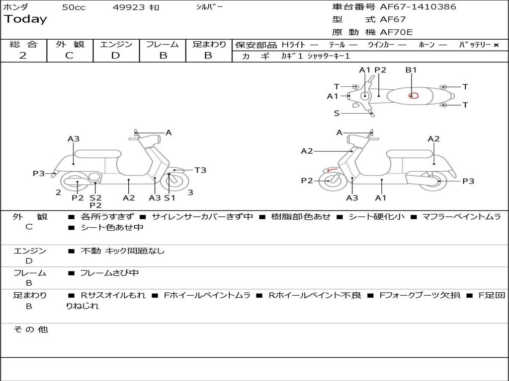 | Номер рамы / VIN | AF67-1410386 |