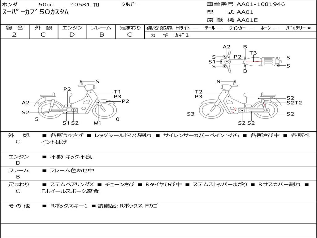 | Номер рамы / VIN | AA01-1081946 |