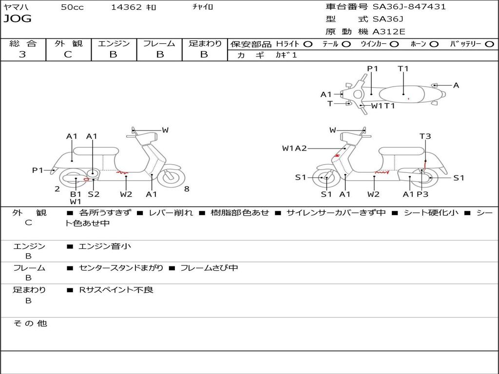 | Номер рамы / VIN | SA36J-847431 |