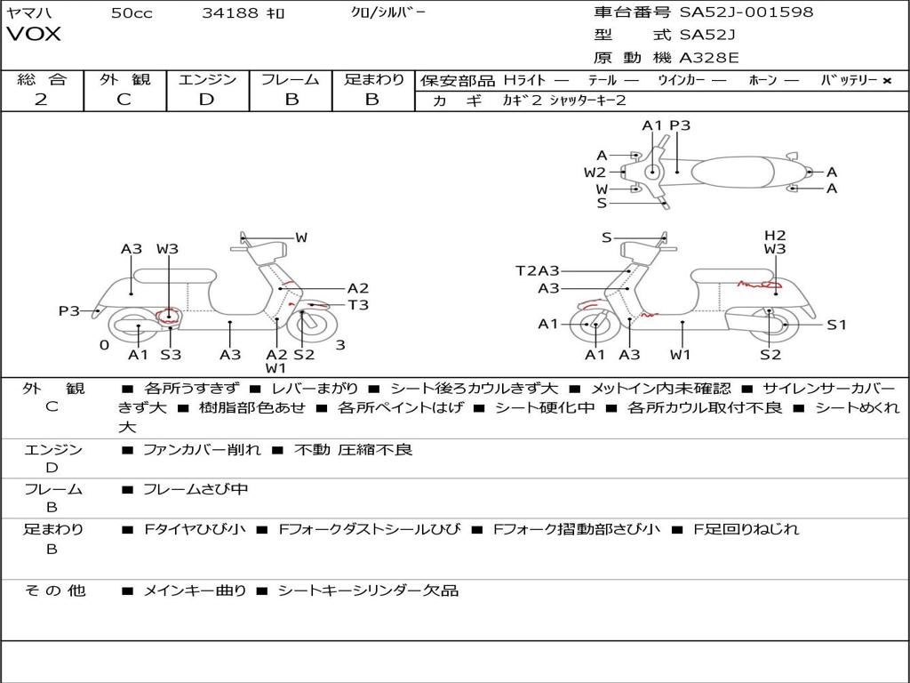 | Номер рамы / VIN | SA52J-001598 |