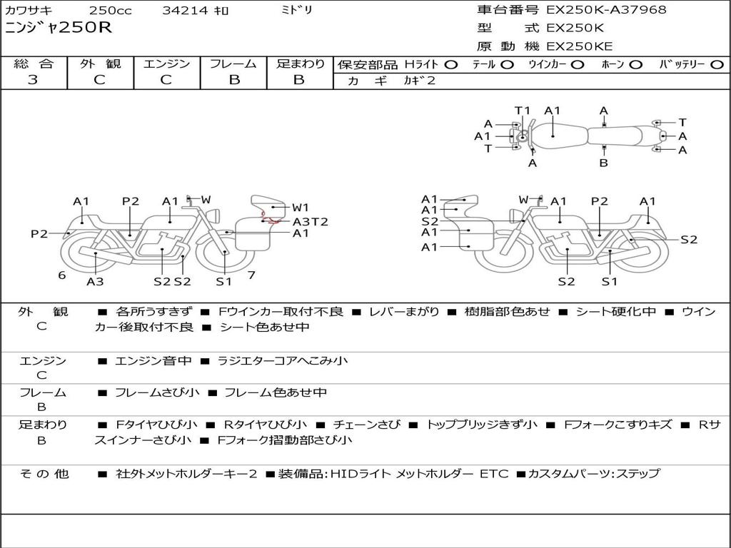 | Номер рамы / VIN | EX250K-A37968 |