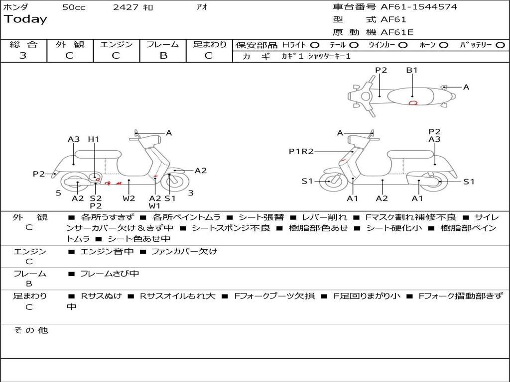 | Номер рамы / VIN | AF61-1544574 |