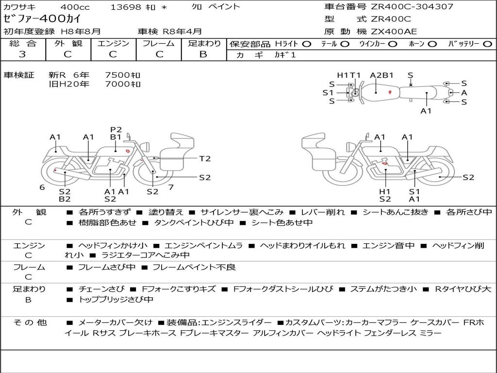 | Номер рамы / VIN | ZR400C-304307 |