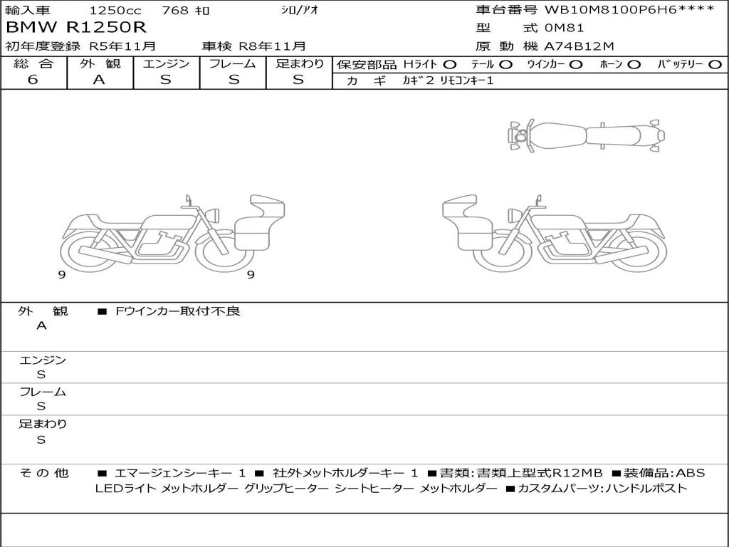 | Номер рамы / VIN | WB10M8100P6H63001 |