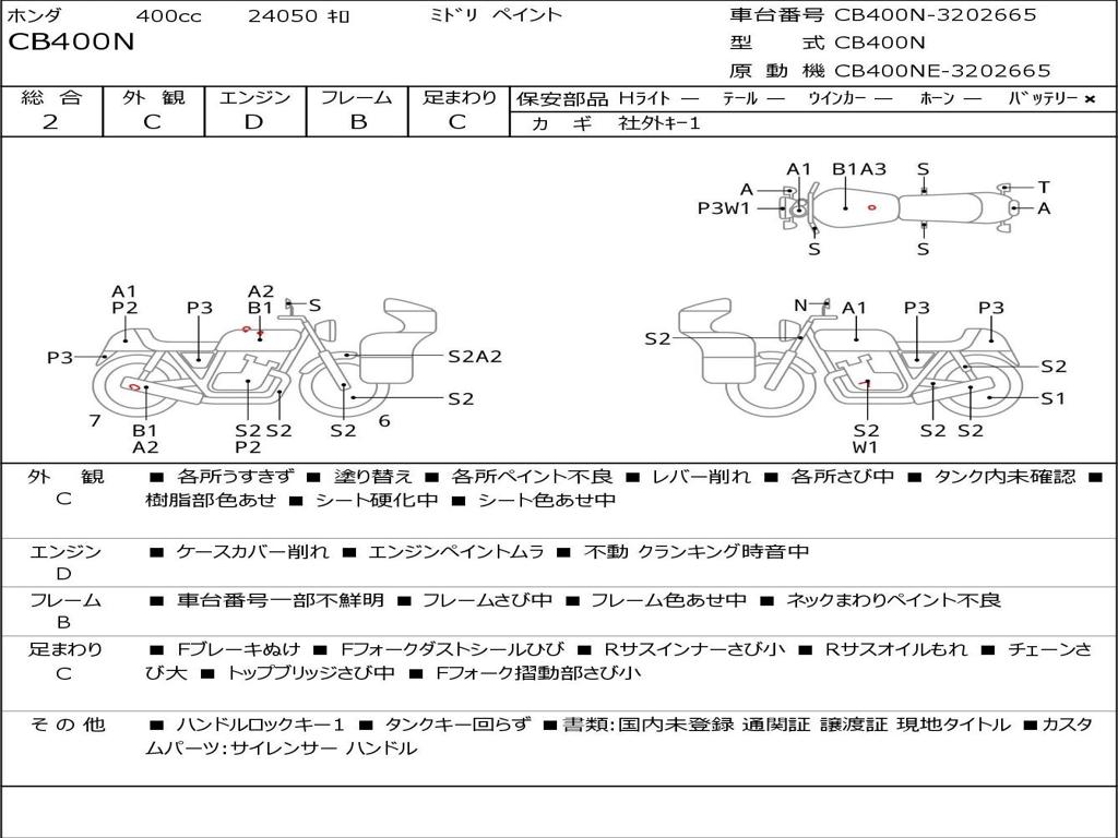 | Номер рамы / VIN | CB400N-3202665 |