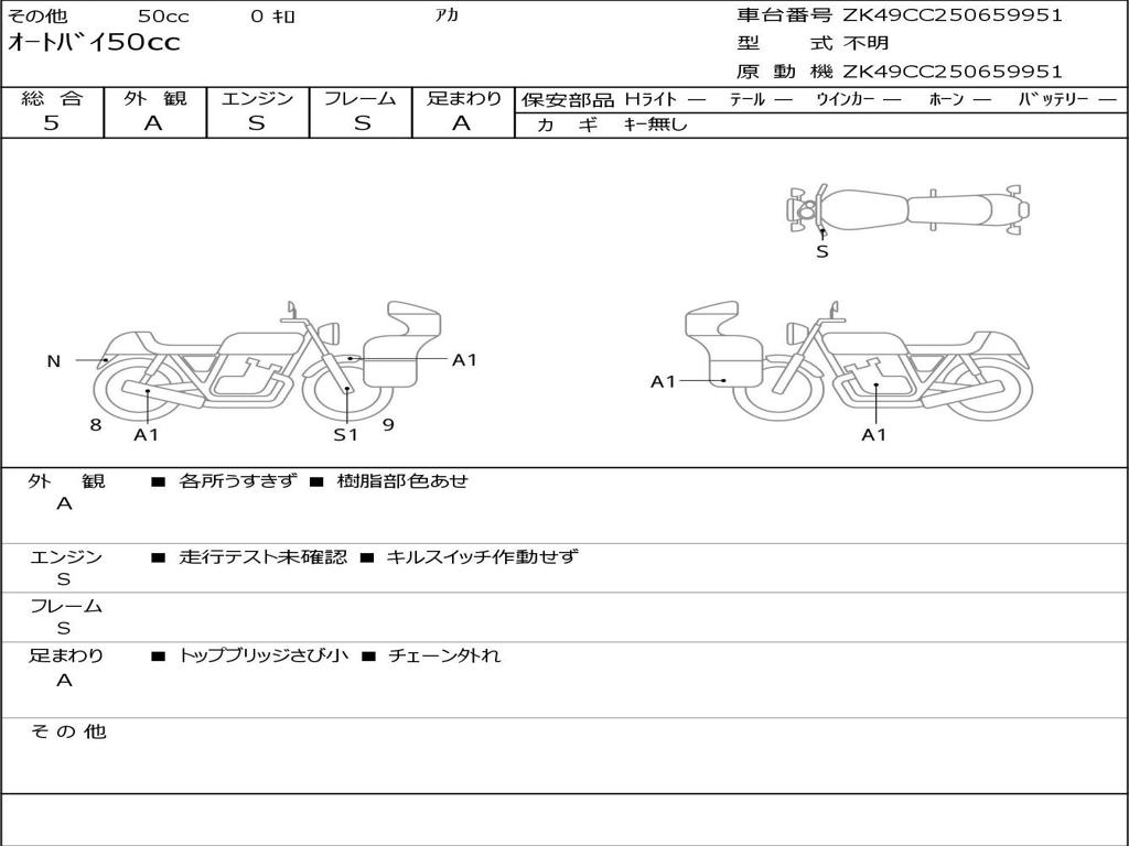 | Номер рамы / VIN | ZK49CC250659951 |