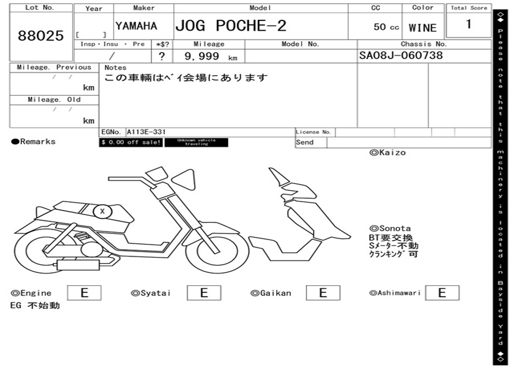 | Номер рамы / VIN | SA08J-060738 |