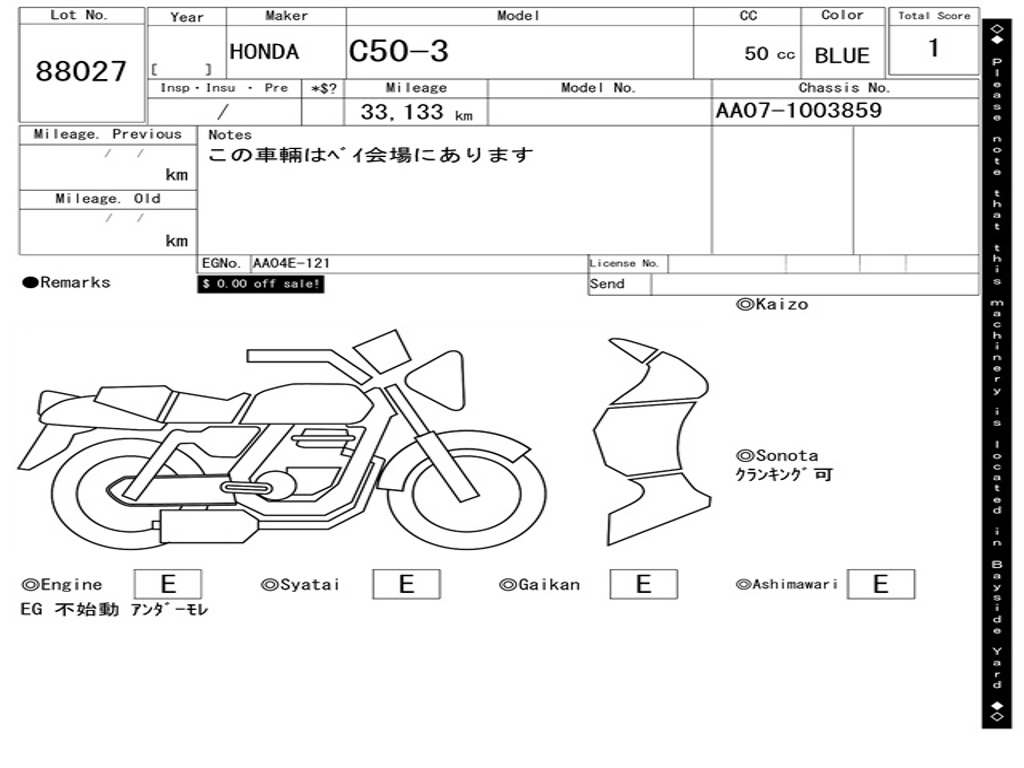 | Аукцион | ARAI BAYSIDE |