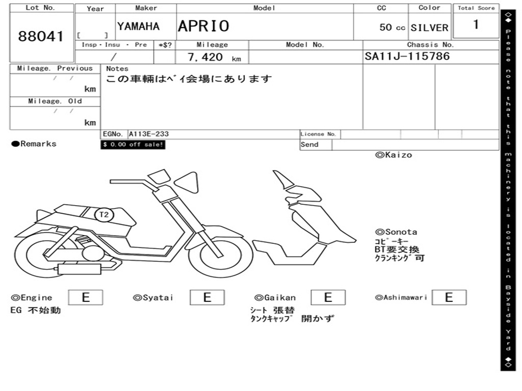 | Номер рамы / VIN | SA11J-115786 |