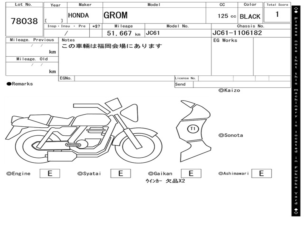 | Номер рамы / VIN | JC61-1106182 |