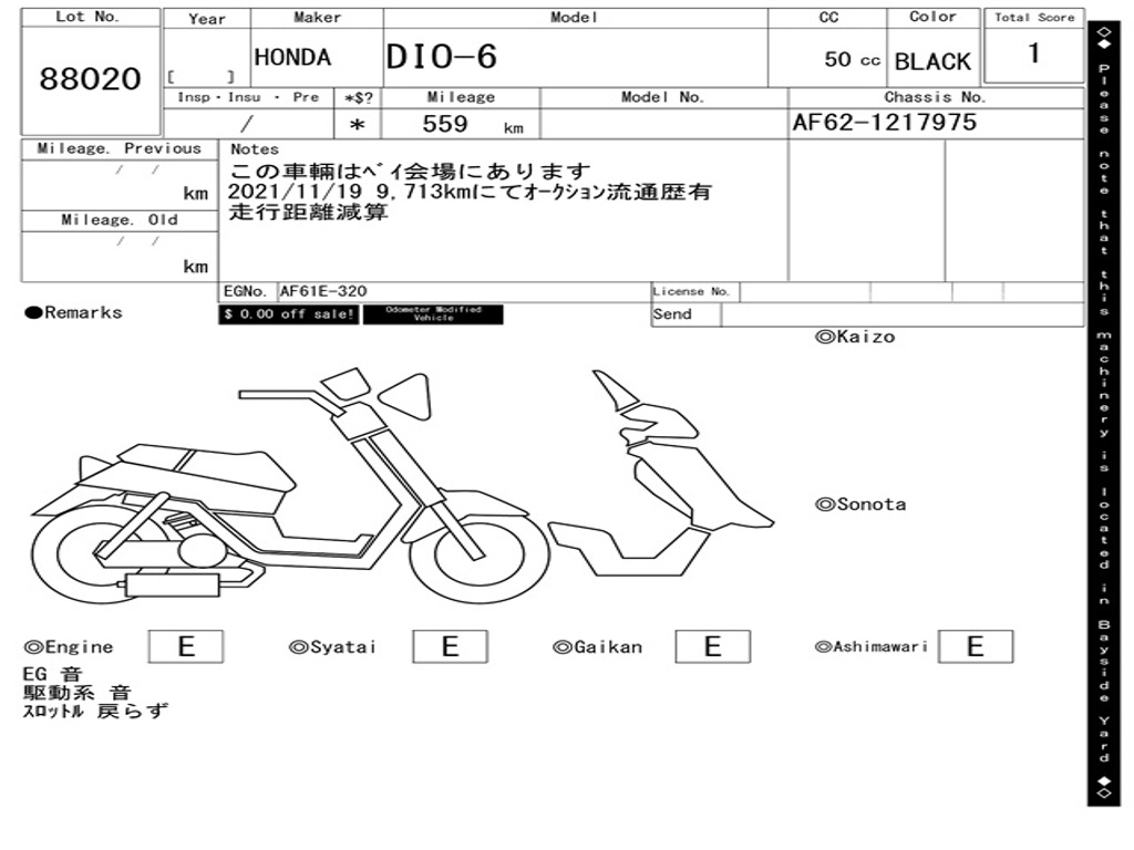 | Номер рамы / VIN | AF62-1217975 |