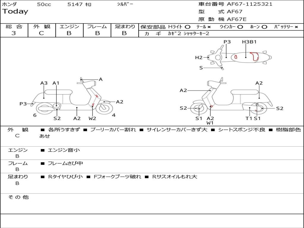 | Номер рамы / VIN | AF67-1125321 |