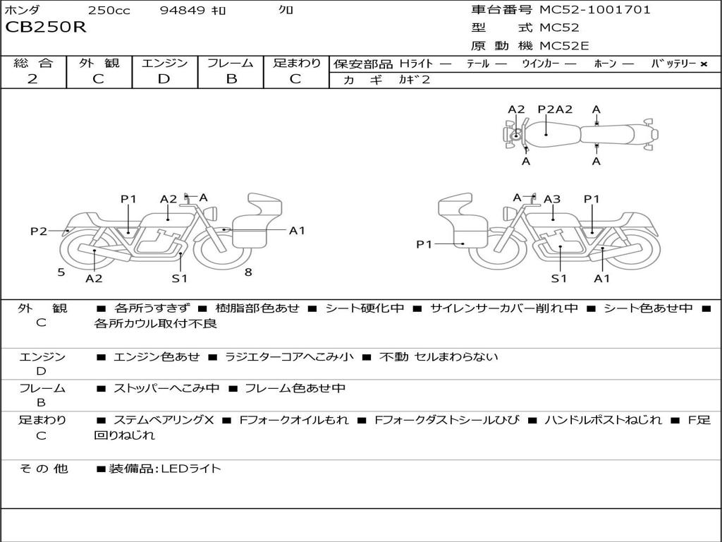 | Номер рамы / VIN | MC52-1001701 |