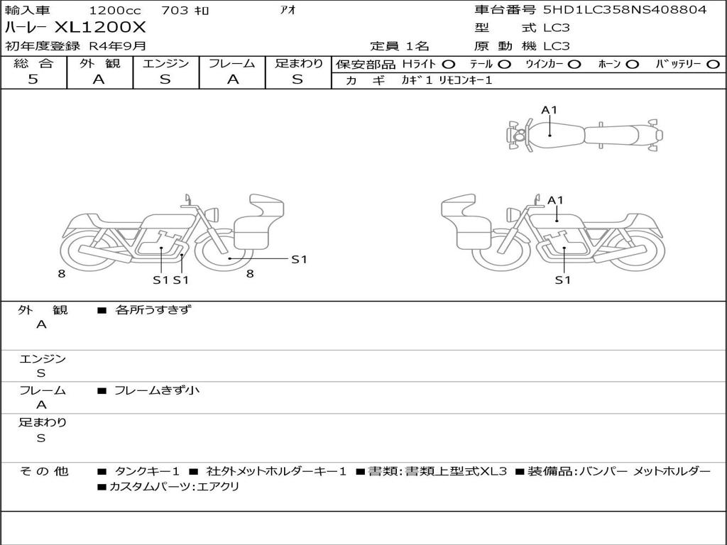 | Номер рамы / VIN | 5HD1LC358NS408804 |