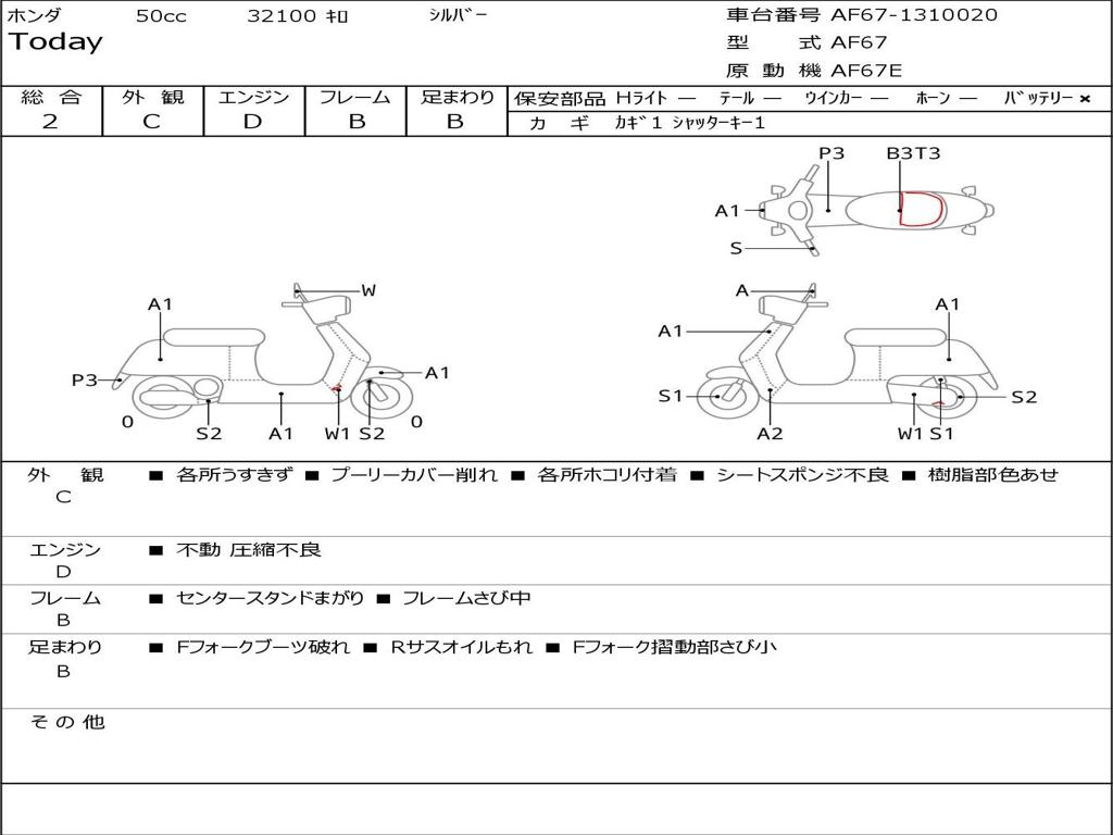 | Номер рамы / VIN | AF67-1310020 |