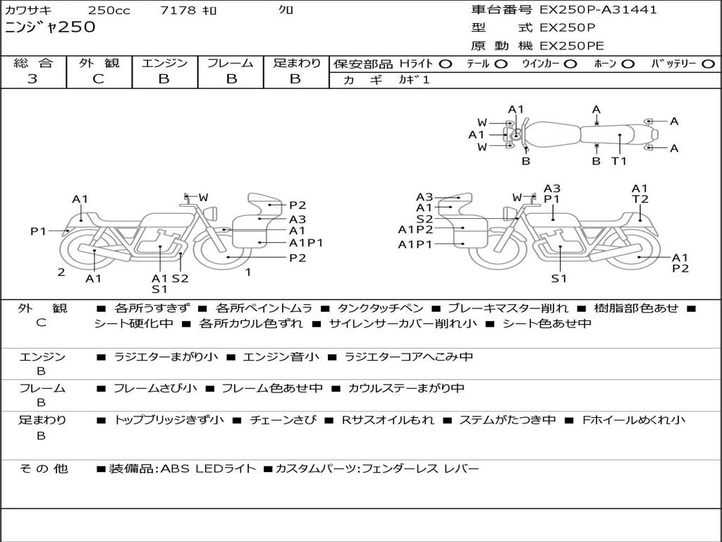 | Номер рамы / VIN | EX250P-A31441 |
