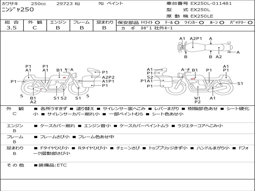 | Номер рамы / VIN | EX250L-011481 |