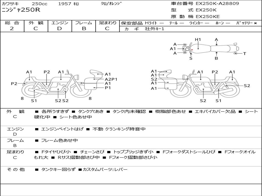 | Номер рамы / VIN | EX250K-A28809 |