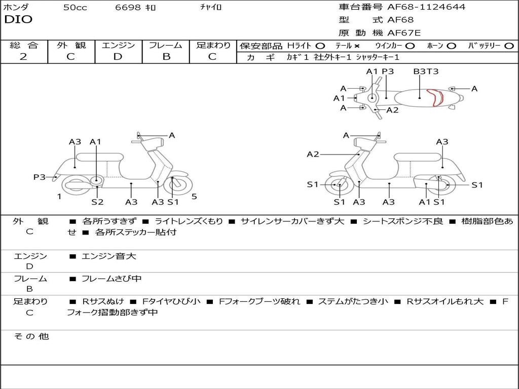| Номер рамы / VIN | AF68-1124644 |