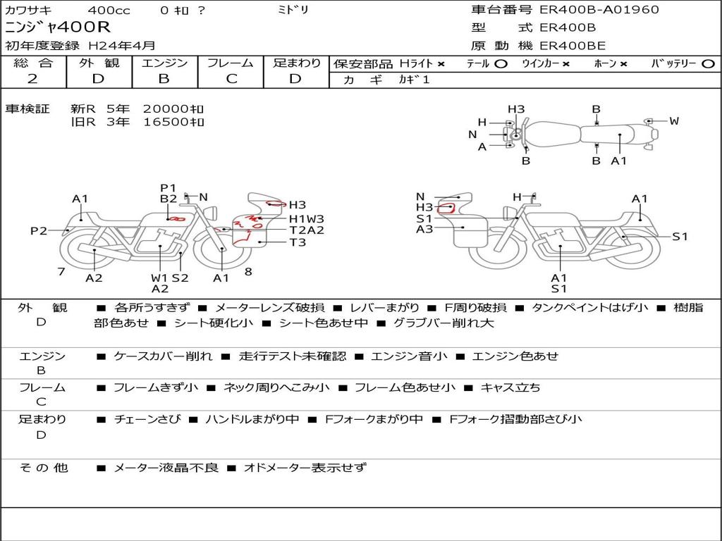 | Номер рамы / VIN | ER400B-A01960 |