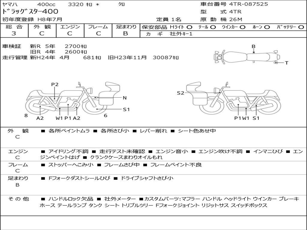 | Номер рамы / VIN | 4TR-087525 |