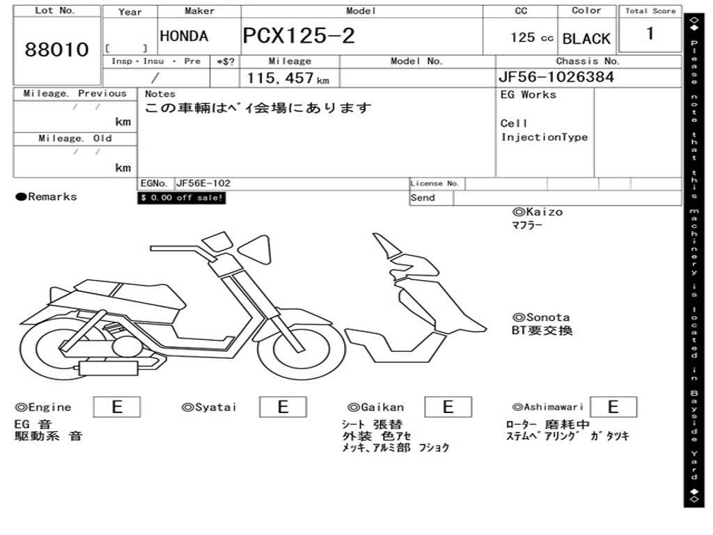 | Номер рамы / VIN | JF56-1026384 |