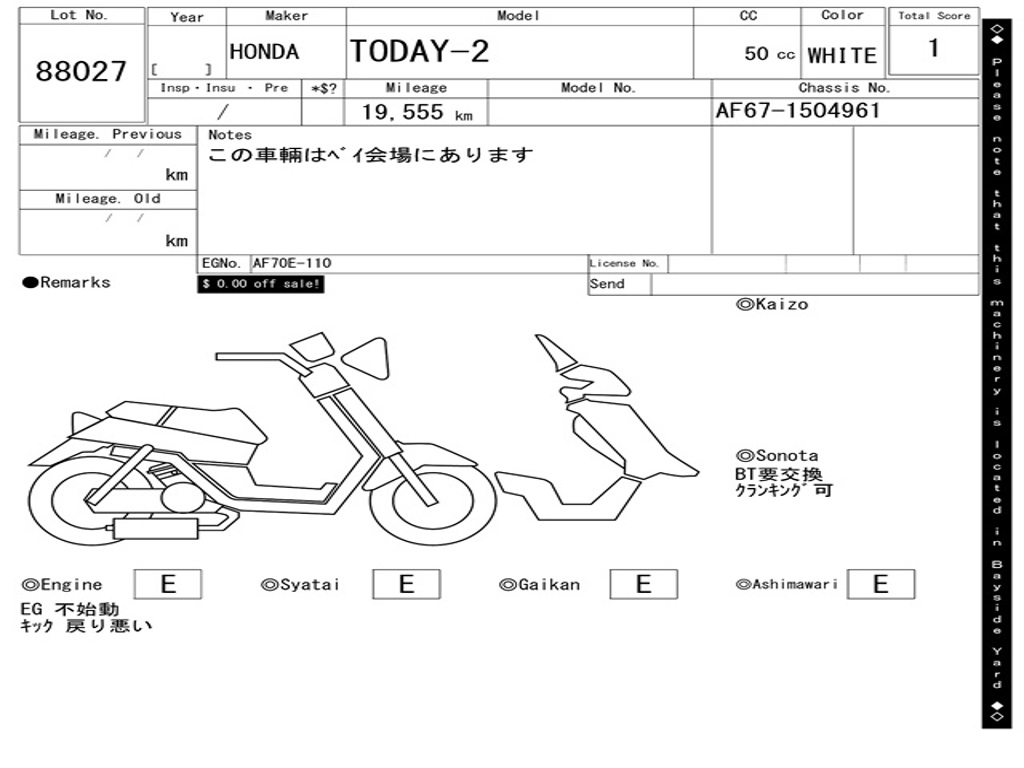 | Номер рамы / VIN | AF67-1504961 |