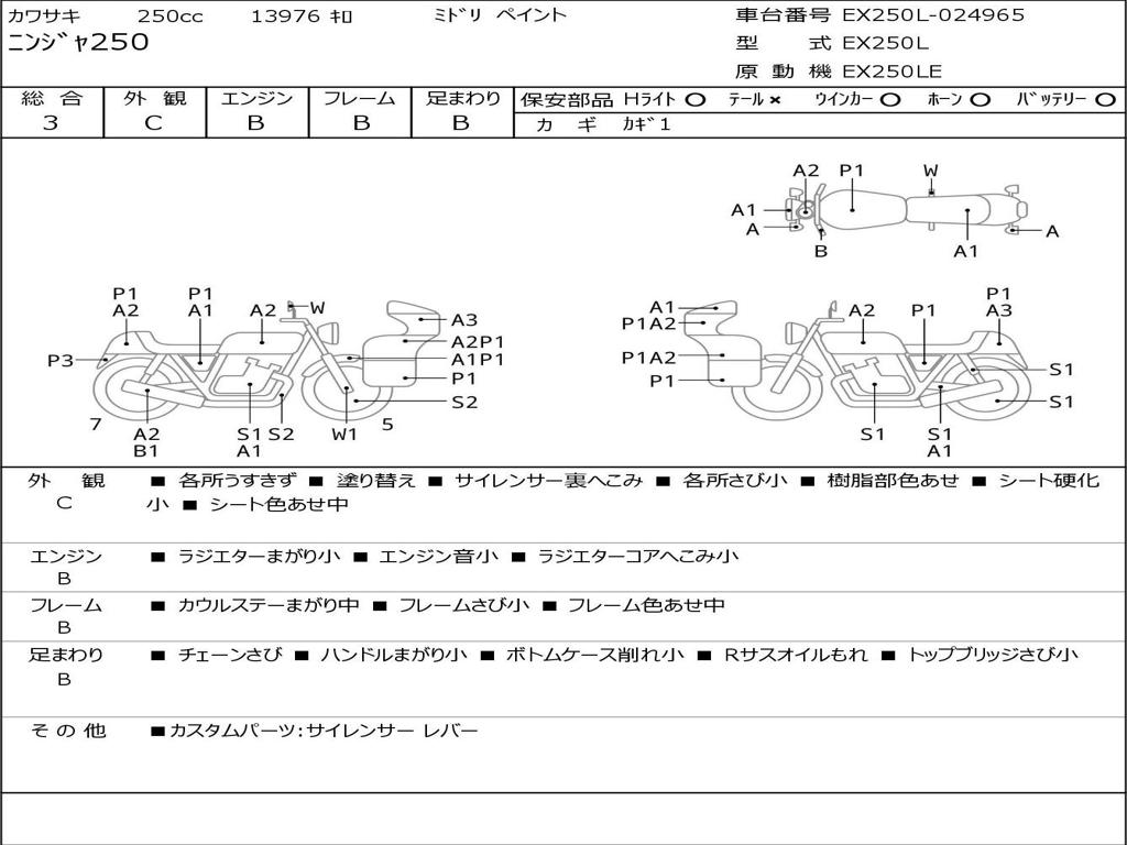 | Номер рамы / VIN | EX250L-024965 |