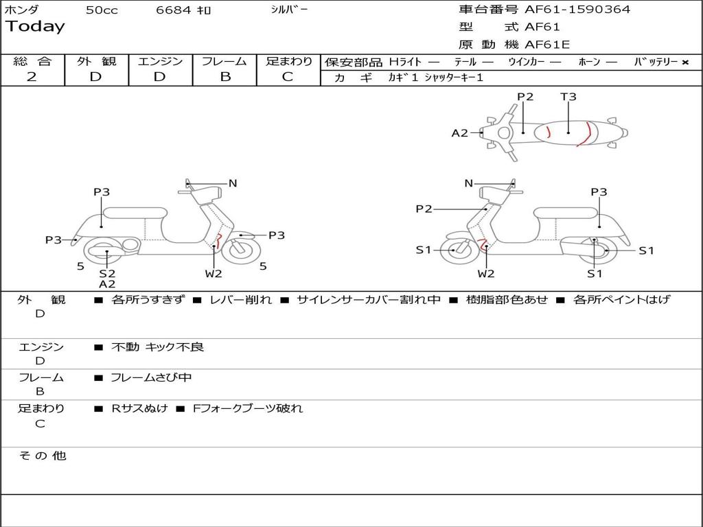 | Номер рамы / VIN | AF61-1590364 |
