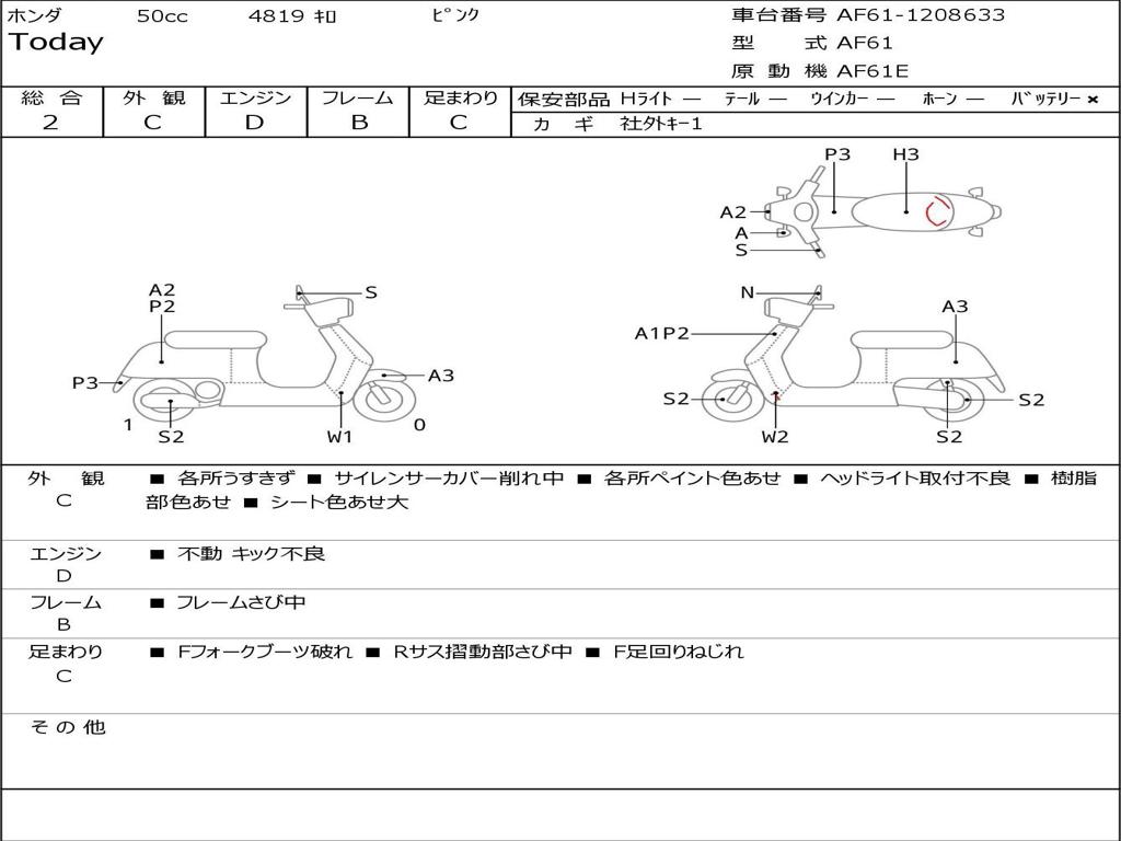 | Номер рамы / VIN | AF61-1208633 |