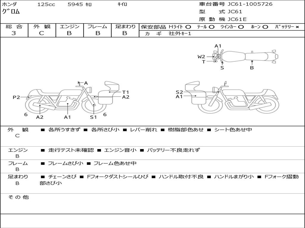 | Номер рамы / VIN | JC61-1005726 |