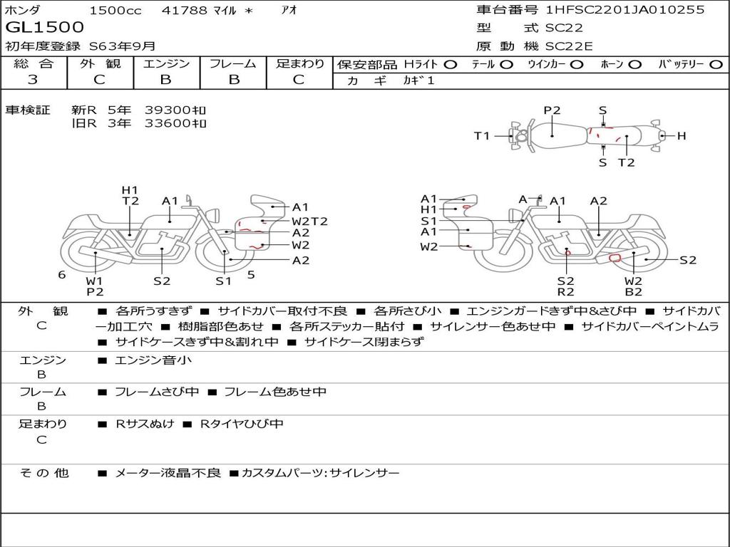 | Номер рамы / VIN | 1HFSC2201JA010255 |